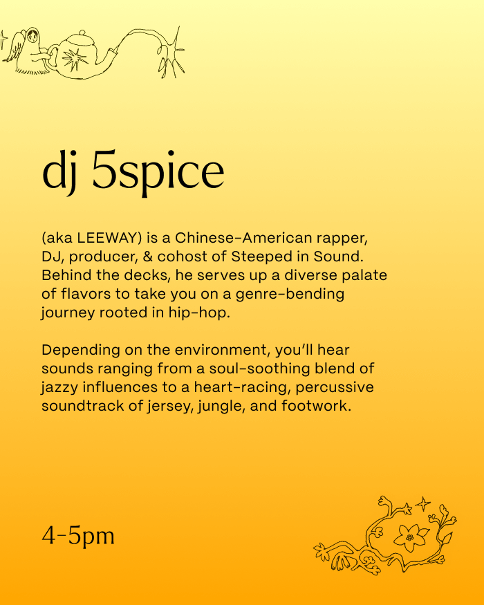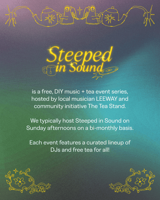 Steeped in Sound is a DIY, community-focused event series centered on warm music and free tea in intimate daytime settings, hosted by myself and local nonprofit The Tea Stand.
